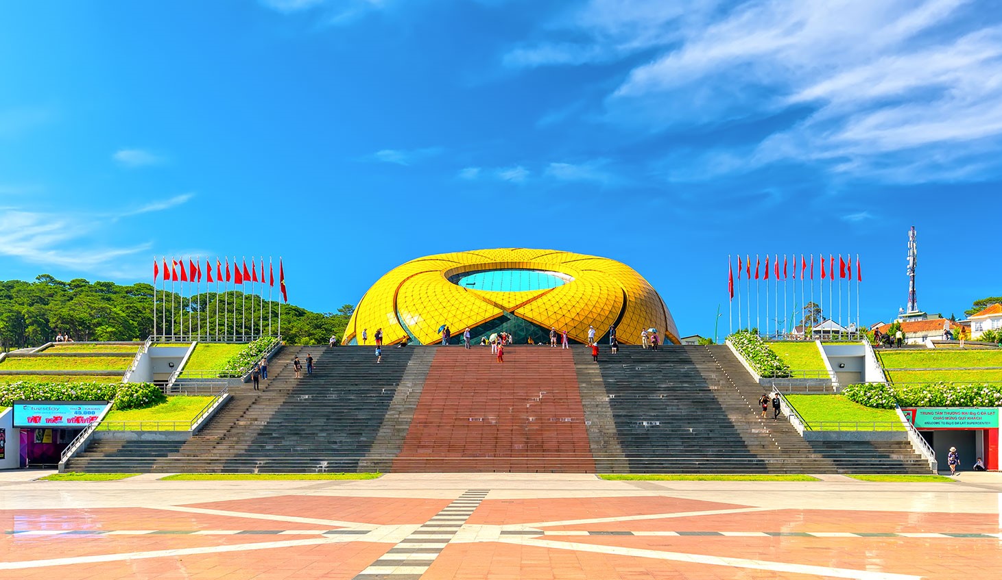 - Check-in QUẢNG TRƯỜNG LÂM VIÊN - biểu tượng của TP. Đà Lạt nổi bật với đóa hoa dã quỳ và nụ hoa atiso hướng ra Hồ Xuân Hương